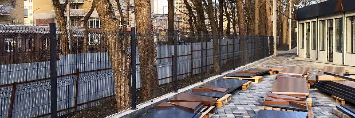 После происходит монтаж опор забора, которые могут быть различной конструкции в зависимости от требований заказчика. Затем секции устанавливаются на опоры и закрепляются с помощью крепежных элементов.